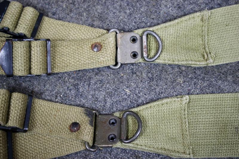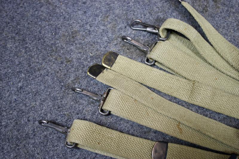 A set of M1936 suspenders which have faint 1942 date and makers stamp. This example is in good condition with all the clips in good order.