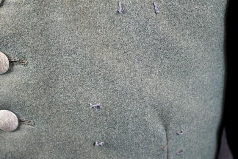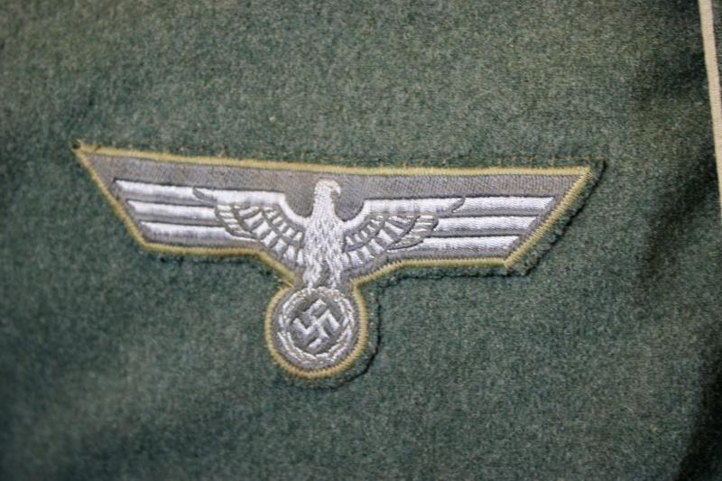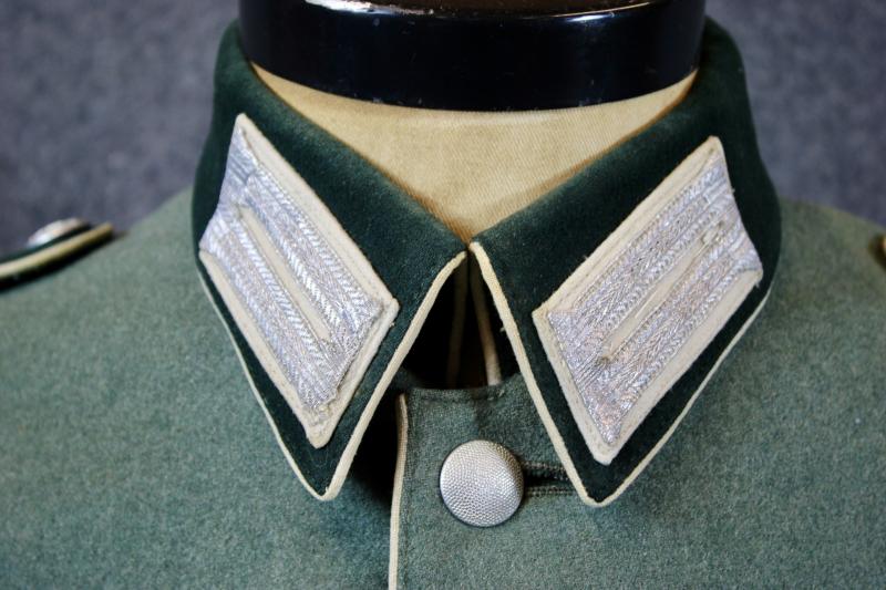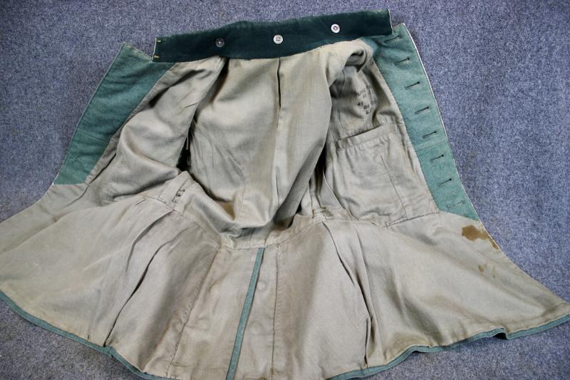 This is army parade tunic which has the branch of service piping white for Infantry, with 4th Company epaulette buttons. The tunic is in very good condition, with three sets of award loops. I would believe the awards would have been, 2nd Class Iron Cross ribbon bar, Infantry Assault and wound badges. The tunic is dated 1938. ( E38). The letter E is for Erfurt. The parade tunic ( Waffenrock ) was only in production from 1936 to 1940, when war demands too president the production of the parade tunic was stopped. However it was planned for the parade tunic to be re-introduced after the war.