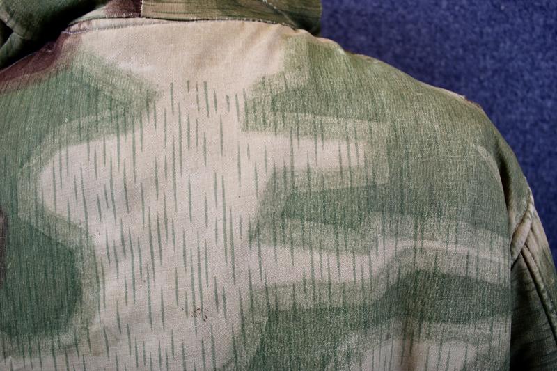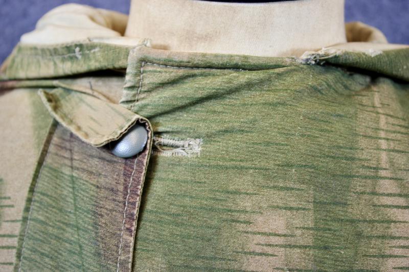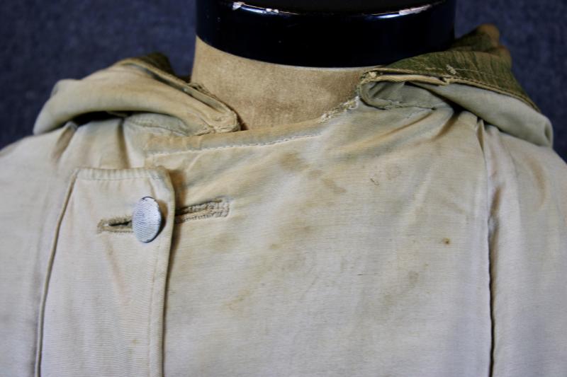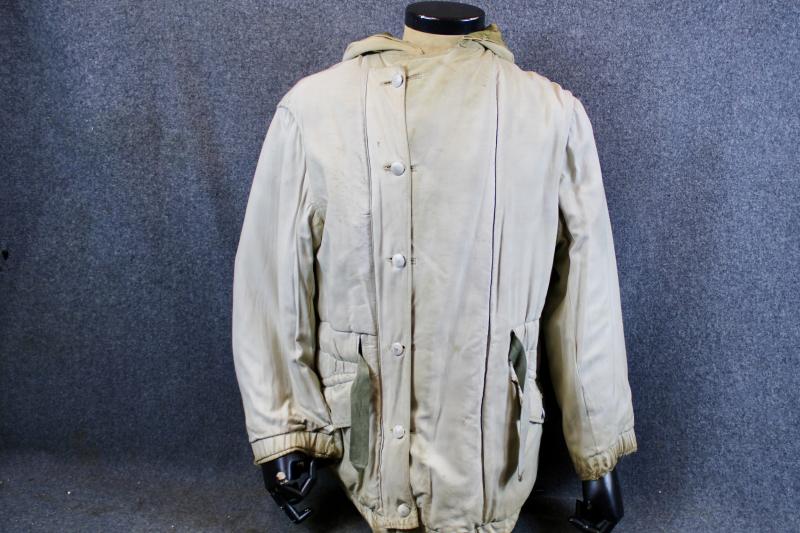 This is good example of a Tan & Water reversible winter parka. Note the tear drop camouflage pattern on the front of the parka is horizontal, where the arms and back are vertical, which makes this example a unique version of the Tan & Water camouflage pattern.