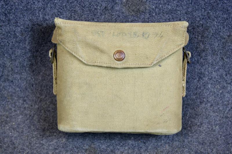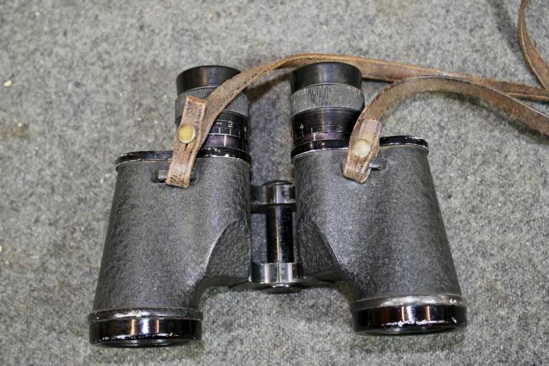 A set of 6x30 binoculars with a 1942 dated 37 pattern pouch which is maker marked Z.L.&T.LTD. The optics do have some black specks, but are in generally good.