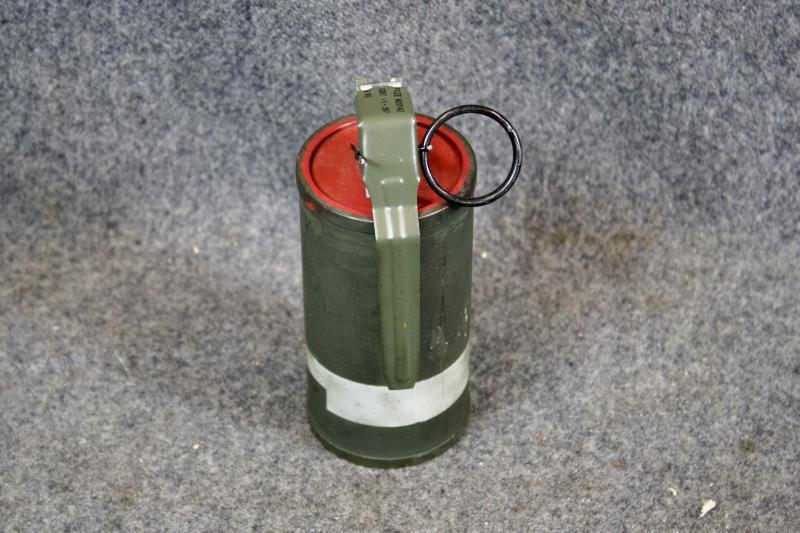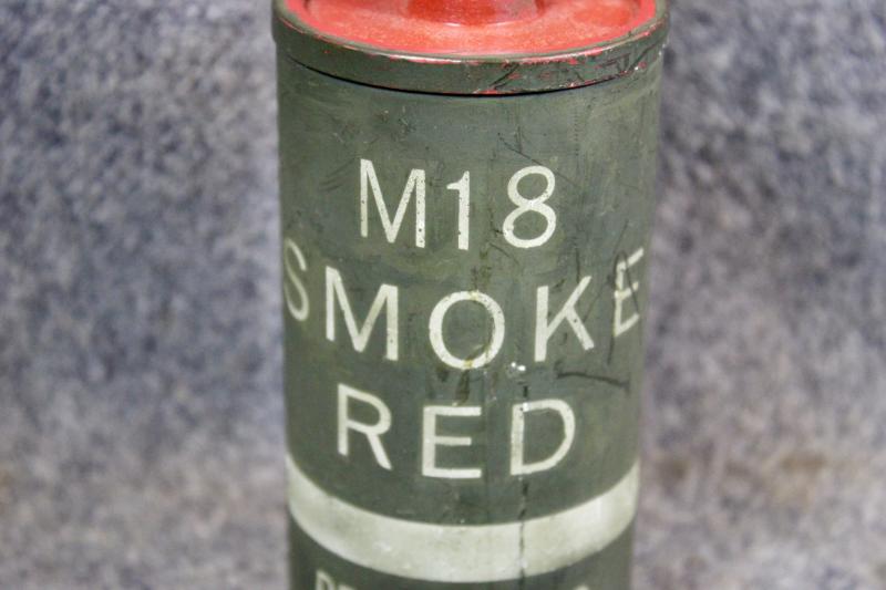 The M18 smoke grenade was first introduced during WW2 in 1942 and came in various smoke colours. The M18 smoke grenade continues to be uses by the U.S. military. This example is in excellent condition, red colour designation and has a September 1990 dated fuse. U.K. Sales Only