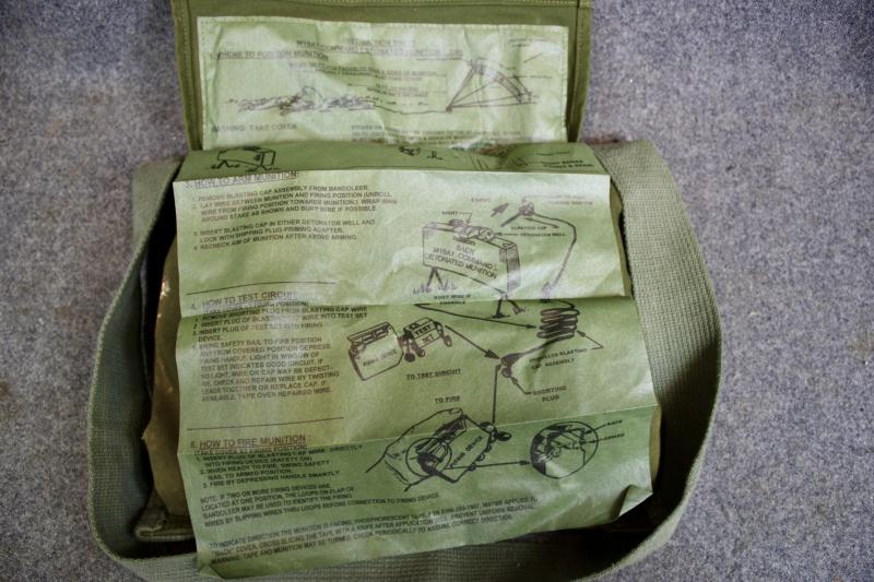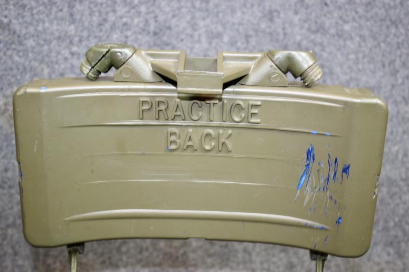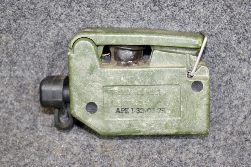 This is M68 practice training aid of the M18A1 claymore mine. It is identical to the M18A1. However it would have originally been painted blue to distinguish from a live M18A1 mine. However this example has been over painted green by an re-enactor. It comes with a inert M57 firing device, more commonly known as the "Clacker", a inert M40 circuit testing unit and a dummy blasting cap ( wire ). It also comes with the M7 pouch which retains its instruction sheet. U.K. Sales Only.