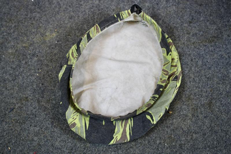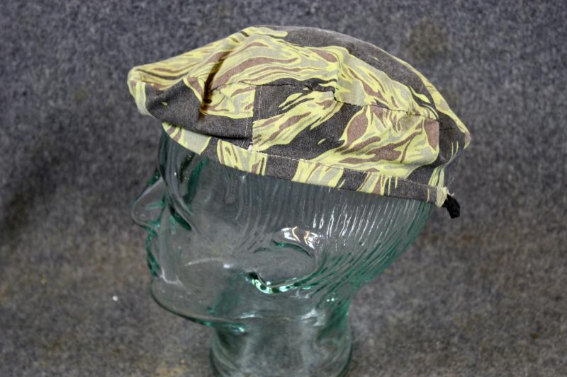 This is a tiger stripe camouflage beret worn by ARVN rangers, which is in excellent condition.