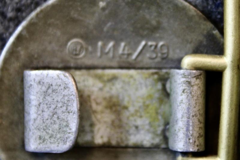 This is a political leaders belt buckle which has lost most of its gilt gold finish. However traces of the gold gilt finish are still visible especially around the belt clip. It is maker marked "M4/39" which identifies the manufacturer as F.W. Assmann & Sohne.