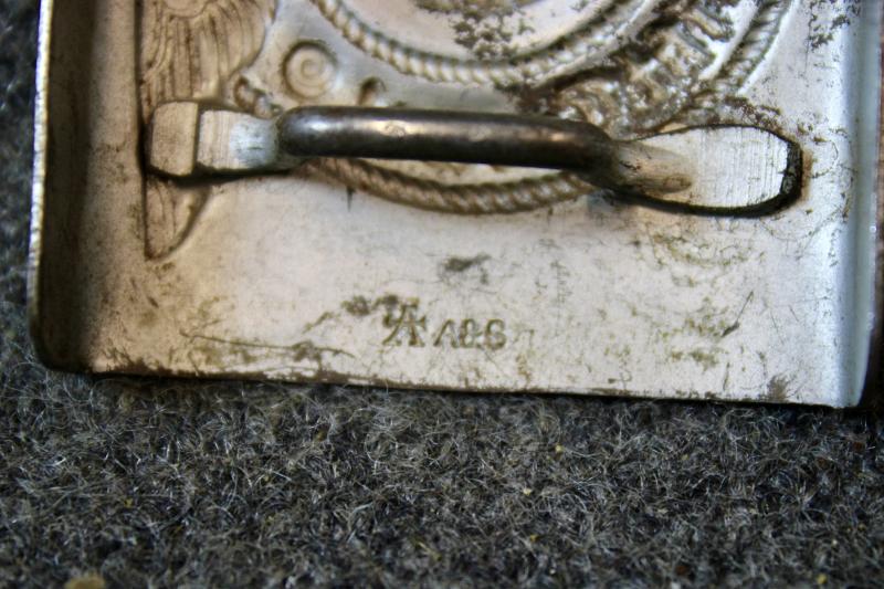 This is a mid-war made steel Waffen-SS belt buckle which retains 60% of its silver gilt finish. This example maker marked "A&S" for F.W. Assmann & Sohne.