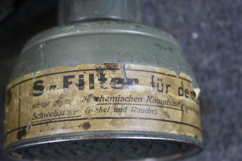 This is an early pre-war 1st pattern M30 gas mask which has a different valve snout, than the later examples .THhe valve snout was changed in the late 1930's. This example is in excellent condition and comes with a S-filter which is dated 1936 and Luftschutz marked. The canister is dated 1937 and retains its spare lenses still in their issue packet.
