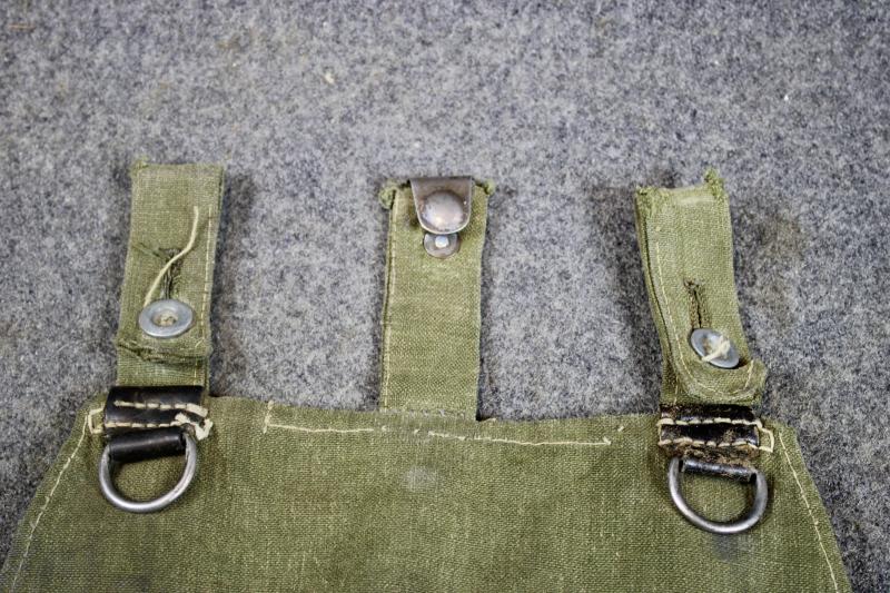 This is an early war M31 bread bag, which discontinued the leather re-enforcement as a war saving measure. This example is in good condition.