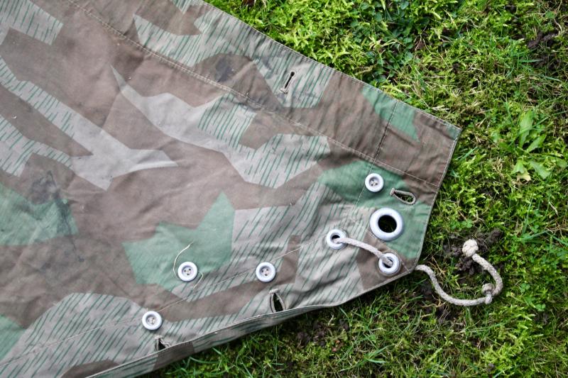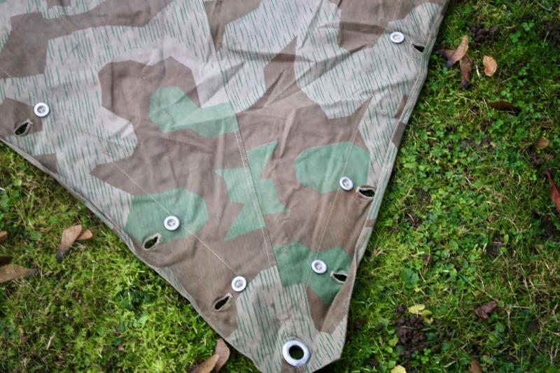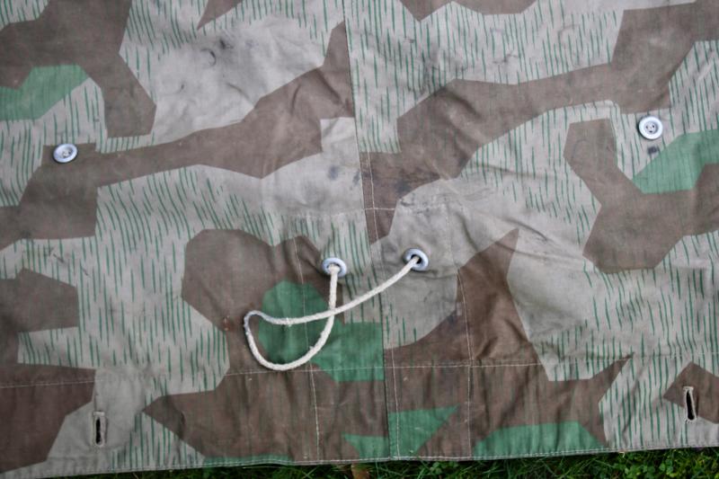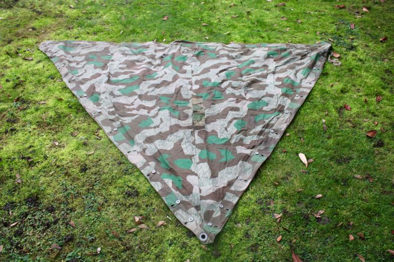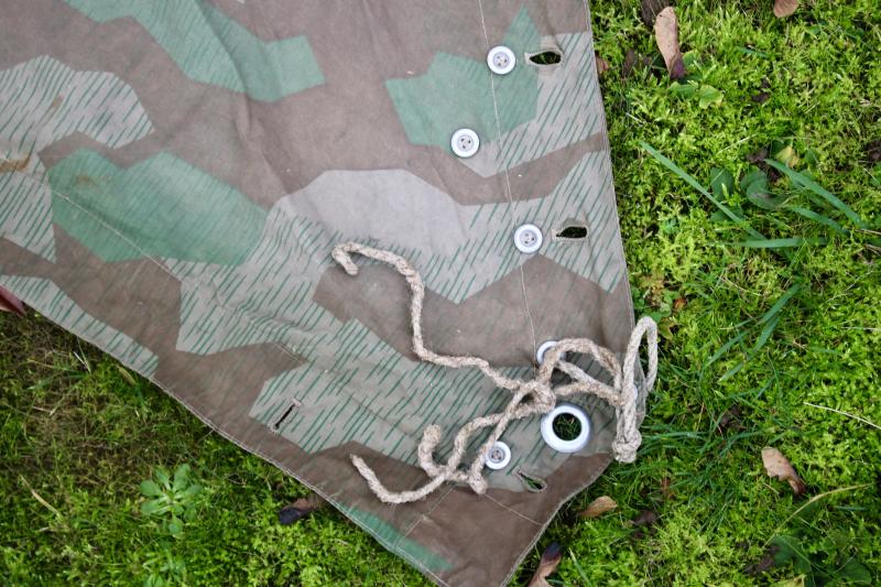 This is a early war two toned M31 zeltbahn, which can be used as a shelter half or a poncho. This example is in good condition, retaining all of its buttons and guide rope.