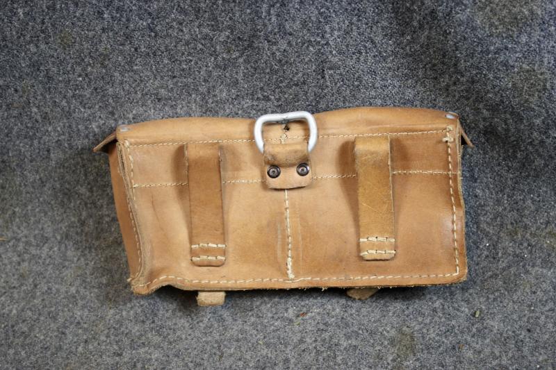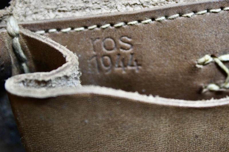 A unissued example of a G43 magazine pouch which is maker marked "ros" which identifies the maker as E.G.Leuner GmbH amd dated 1944.