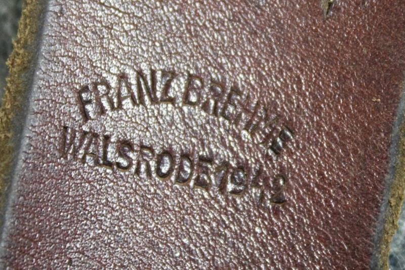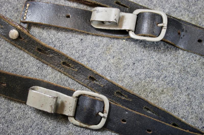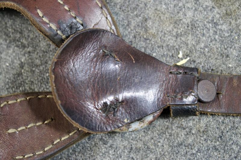 A set of y-straps which are maker marked "Franz Brehme Walsorde and dated 1942. The leather ring loops have torn but still attached. Still ideal for display.