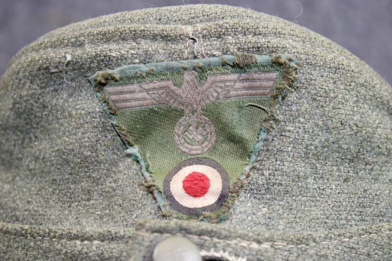 This is a late-war M43 cap which has a woollen ling for additional warmth. The cap's insignia has been re-applied. Otherwise it is in very good condition.