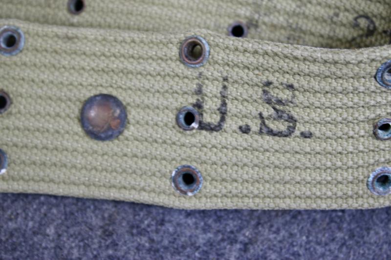 This is a 1943 dated M1936 pistol belt which is maker marked NASCO. This example was issued twice as it has two sets of personal service numbers and measurers 42 inches.