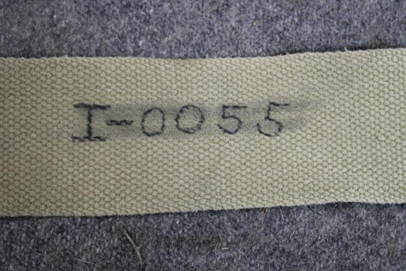 A set of M1936 suspenders which are maker marked Hanson MFG and dated 1942. This example is in good condition with all clips intact. They are also marked with the original owners personal service number.