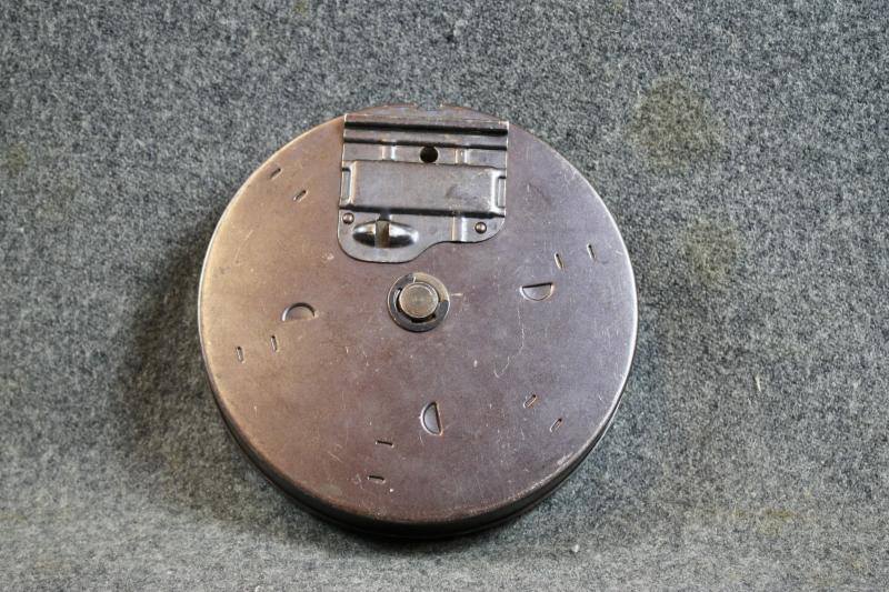 This is an all metal replica 50 round drum magazine for the M1928 Thompson submachine gun. This is not a funcitional magazine and has no internal spring.