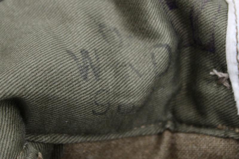 49 pattern Battle Dress trousers, which retain their contract label which gives the manufacturers name, John Hammond LTD, the size, which is size 7 and the date of manufacture 1955. This example has suffered with some very minor moth nips.