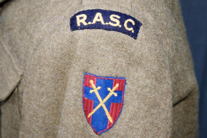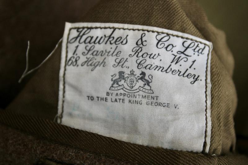 This is a very nice example of a private purchase officers 37 pattern Battle Dress with the rank of Lieutenant of the Royal Army Service Corps ( RASC ) belonging to the 21st Army group, which is a post-war badge of the British army over the Rhine ( BAOR ). The BD also has a paratroopers jump qualification wings. The BD also retains the tailors label, which gives the name of the tailer as Hawkes & Co. LTD at Savile Row London.