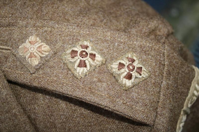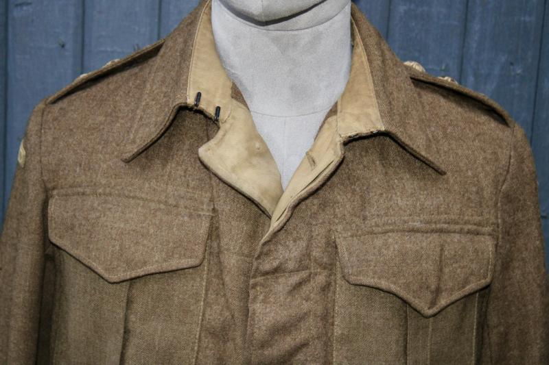 This is a Home Guard officers 37 pattern Battle Dress with the rank of captain. This example is in good condition and retains its contract label. However the details have been washed out. It is approximately a size 8 or 9.