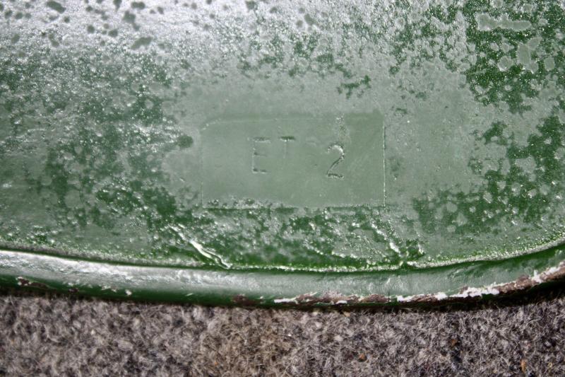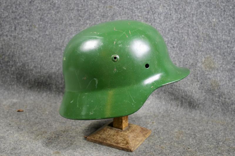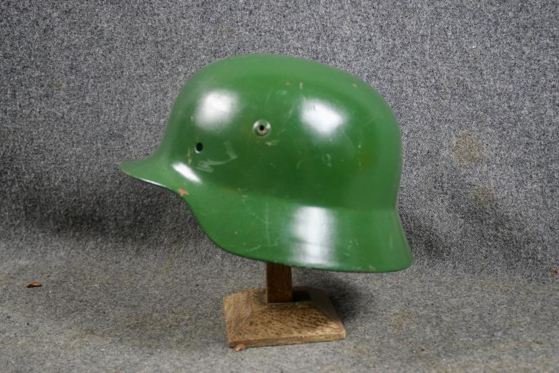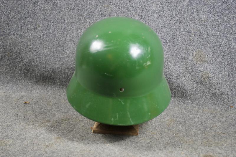 This is a M35 helmet shell which has been overpainted a gloss green. The shell has the batch number 3977 and size stamped 62 with the makers two letter code ET for Eisen-U.Huttenwerke AG. Ideal for an re-enactor to restore.