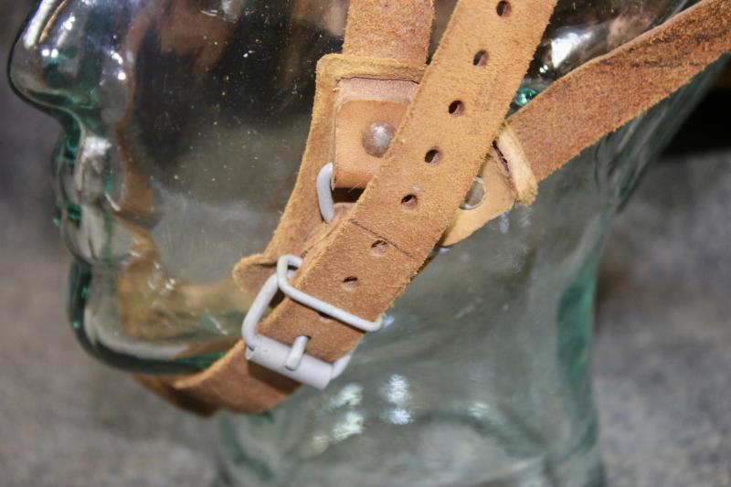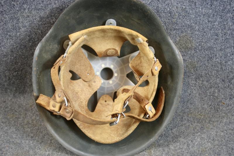 This is the third version of the M56 helmet, which no longer has the external rivets. The M56 helmet had its origins in WW2, where it was designed to replace the helmets worn by the Wehrmacht during WW2. However the design was rejected by Hitler on the grounds that the helmet being worn by the Wehrmacht was a symbol of the German struggle. This example is in good condition.