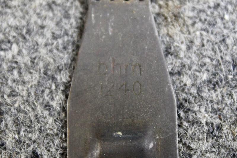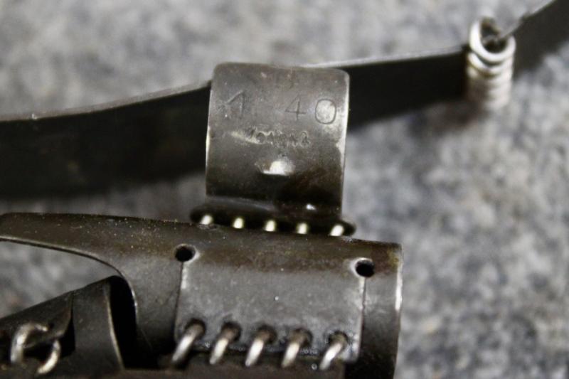 This is 1940 dated MG34 machine gun starter tab and belt, which could also be used for the MG42 machine gun. The starter tab is dated April 1940 and the belt is dated December 1940 and has the maker's code "bhm" for Gustav Auerswald Besteckfabrik.