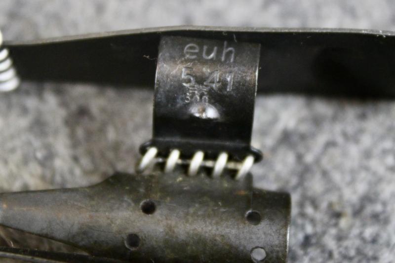 A 1941 dated MG34 starter tab and belt, which could also be used for the MG42 machine gun. The starter tab is dated August 1941 and is not maker marked. The belt is dated May 1941 and has the three letter maker's code "euh" for C&W Meinel-Scholer, Metallwaren.