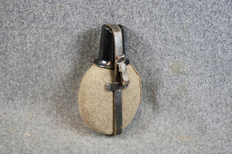 A nice example of an M31 water bottle, which is dated 1941 and comes with a bakelite drinking cup. The cap of the water botte, still contains rubber is and has the three letter makers code "HRE" for C.W.Motz & Co. The bottle is maker marked "L&SL", which identifies the maker as Thuringer Mobelfabrik.