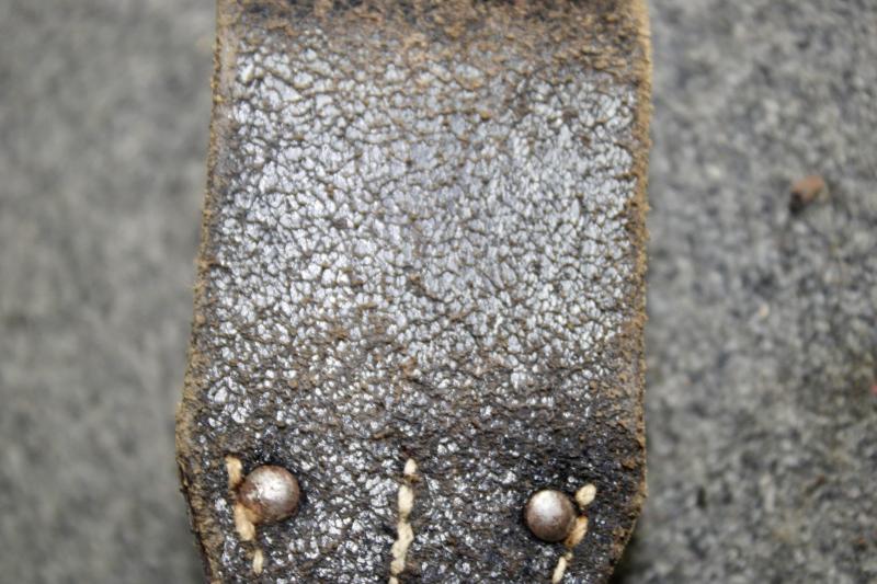 This is the cavalry bayonet frog for the S84/98 bayonet, more commonly referred to as the K98 bayonet. The cavalry frog differs from the standard bayonet frog by the additional pommel retaining strap. From 25th January 1939, the cavalry bayonet frog was issued to service branches.
