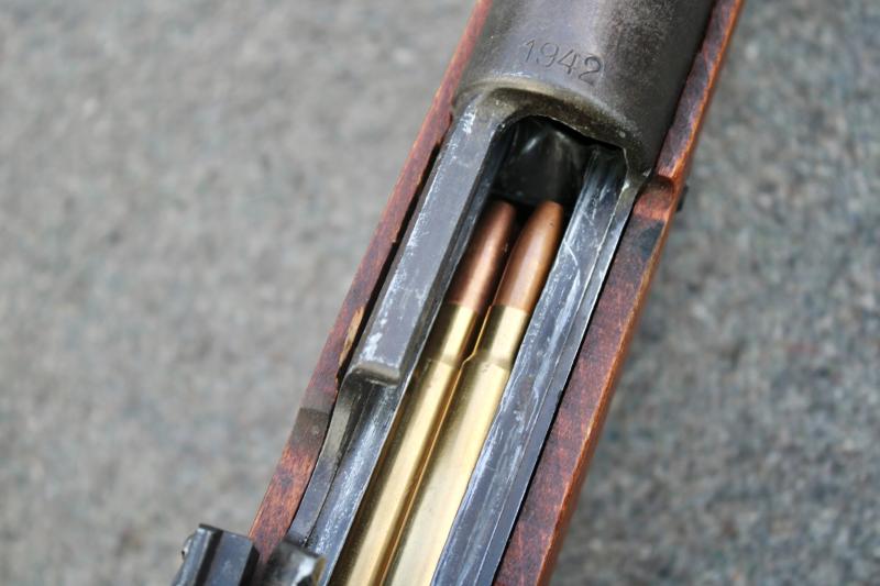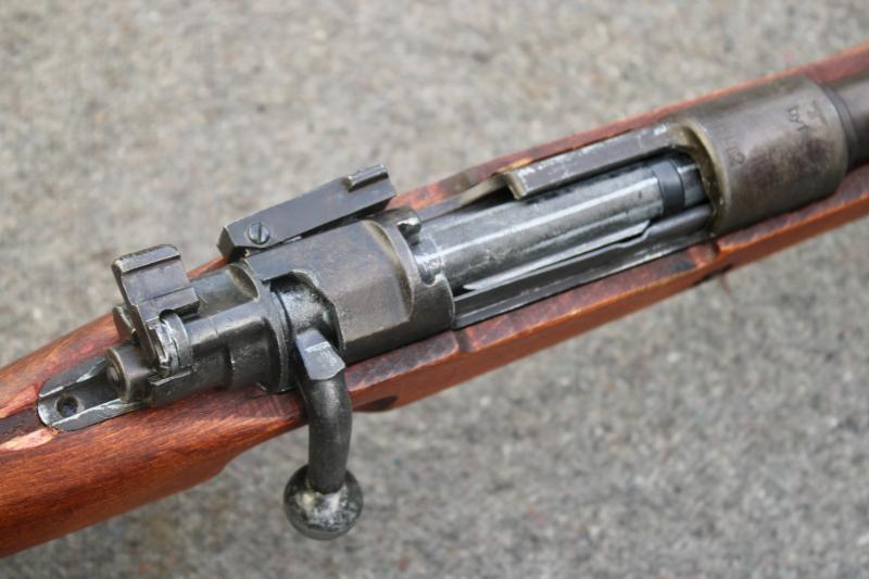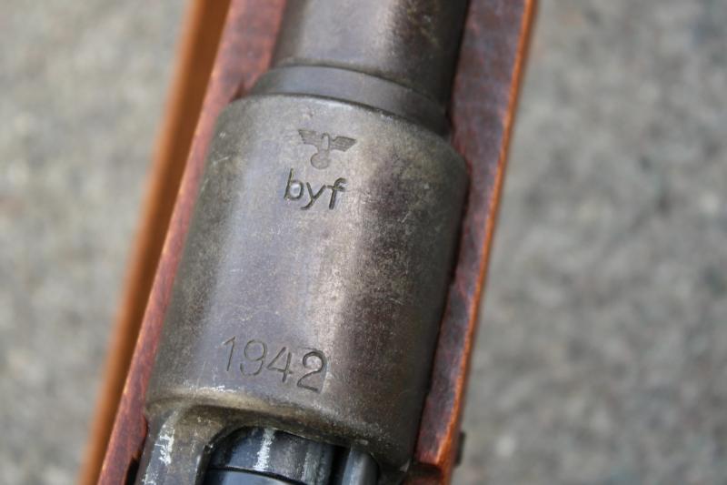 This is an excellent and highly detailed replica of the German K98 rifle. The replica was produced by the Japanese firm "CMC". The replica is made form real wood and metal. It has been given a Third Reich proof markings (Waffenampts ) on the stock and receiver. It has also been stamped with a wartime three letter markers code "byf" for Mauser and given a 1942 dated. The replica will chamber and eject dummy rounds which five are included with the charger clip. It also comes with a reproduction leather sling. Sold subject to the Violent Crimes Reduction Bill. U.K. Sales Only.