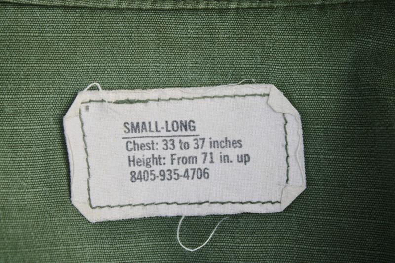 This is a 3rd pattern tropical jacket which has the formation badge of the 173rd Airborne Division and quatermaster school. The collar insignia is of the quartermaster corps. The rank badge has been removed. The jacket has the qualification badges of Air Assault and parachutist and rigger. The name badge has also been removed, however the name is still clearly visible. The jacket als retains its size and contract labels. Size small and dated 1970.