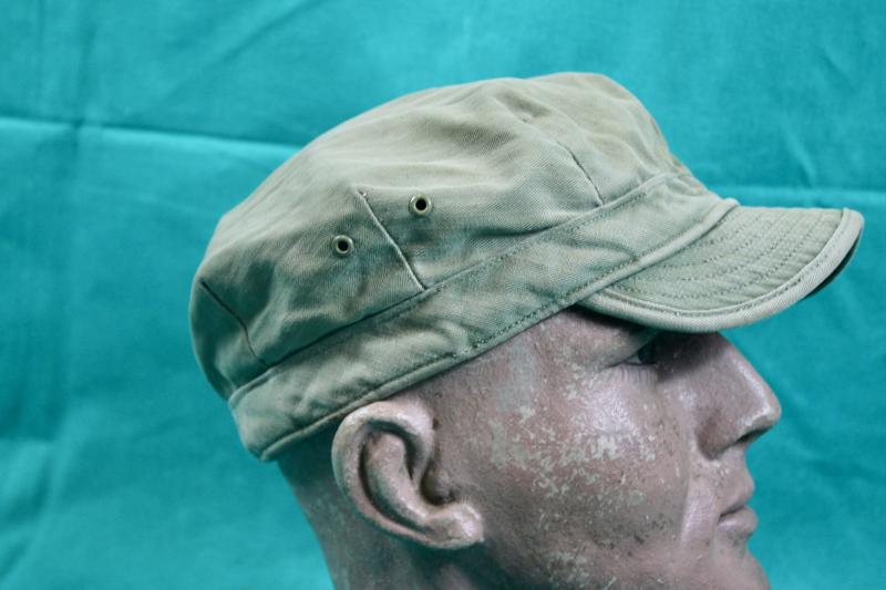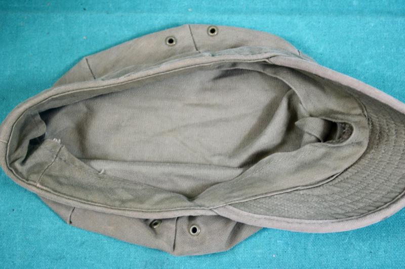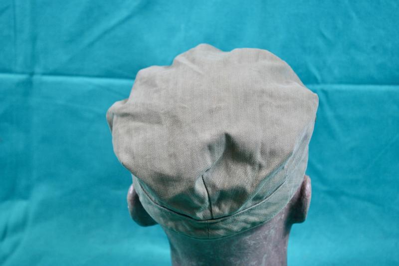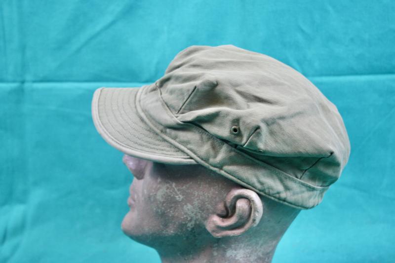 This Herringbone twill cap which was introduced in 1941 and was part of the working clothes mechanics and as combat cap for armoured troops. It was also worn by members of the Marine corp who adorned the cap with the Eagle,globe and anchor collar insignia. This example is approximately a size 7.