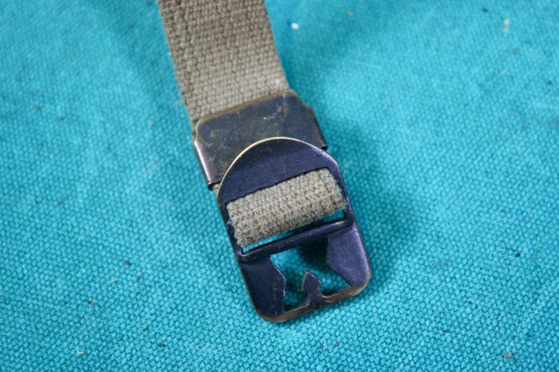 A M1 fixed bale helmet, which would have been produced between July 1941 to October 1943. This example has suffered with a fracture to the shell which was commonly on early M1 helmets and appears to have been repaired and appears to have been period repainted. It also retains its original chinstrap with early blackened brass buckle with raised features. The helmet also comes with a period helmet netting for camouflage purposes. The liunwer is the 3rd pattern plastic high pressure liner which was introduced in late 1942. It is maker marked with the letter "W" on an oval within a circle. which identifies the manufacturer as the Westinghouse Electric Company. The inside of the helmet shell has a visible heat number.