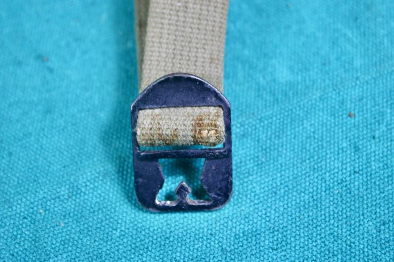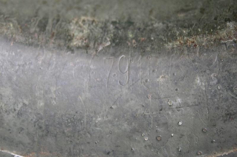 A nice example of a M1 fixed bale helmet which would have been produced between July 1941 to October 1943. The helmet retains its original finish and chinstrap with an early blackened brass buckle with raised features. The heat number heat number on the inside of the shell is visible. The helmet comes with a third pattern plastic high pressure liner which was introduced in late 1942. The liner is maker marked withh the letter "W" on a oval within a circle, which identifies the manufacturer as the Westinghouse Electric Company.