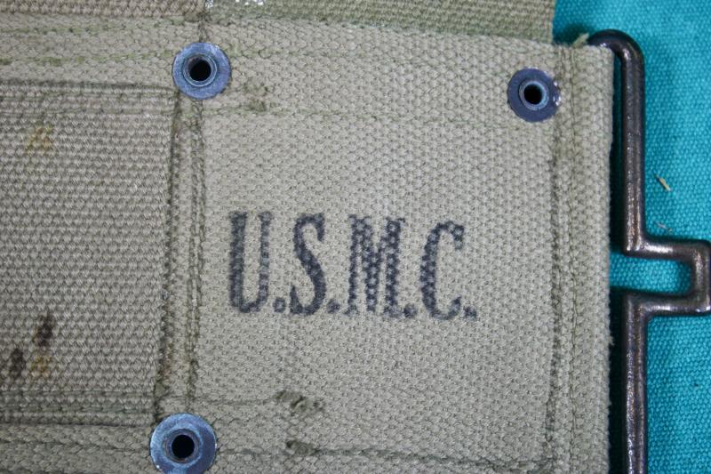 This is unissued Marine Corps marked M1923 ammunition belt which is maker marked Boyt and dated 1943.