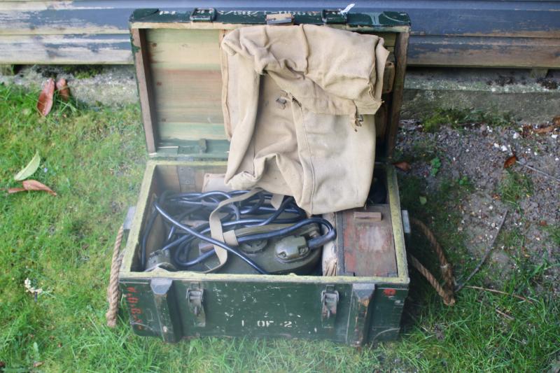 This is a MK4 mine detector was introduced in 1943 and was developed by a Polish army officer Lieutenant Jozef Kozacki. The MK4 mine detector remained in British service with upgraded versions the No4C remaining in service to the mind 1990's. This example is in excellent condition and has a service dated of March 1950. It comes with its transit box, testing unit, instruction manual and a 1944 dated haversack.