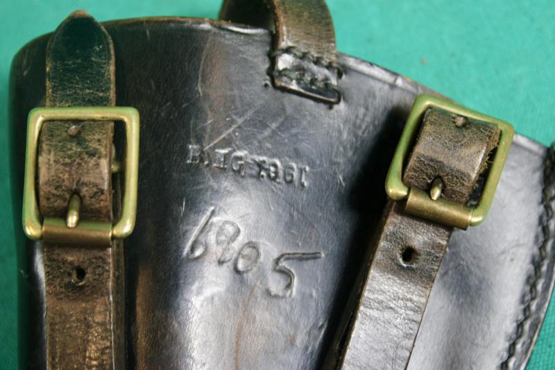 This is a M1903 leather holster for the use with the .38 revolver such as the Webley MKIV, Enfield No2 MK1 and the Smith & Wesson victory. This example dated 1961 and is probably police issue.
