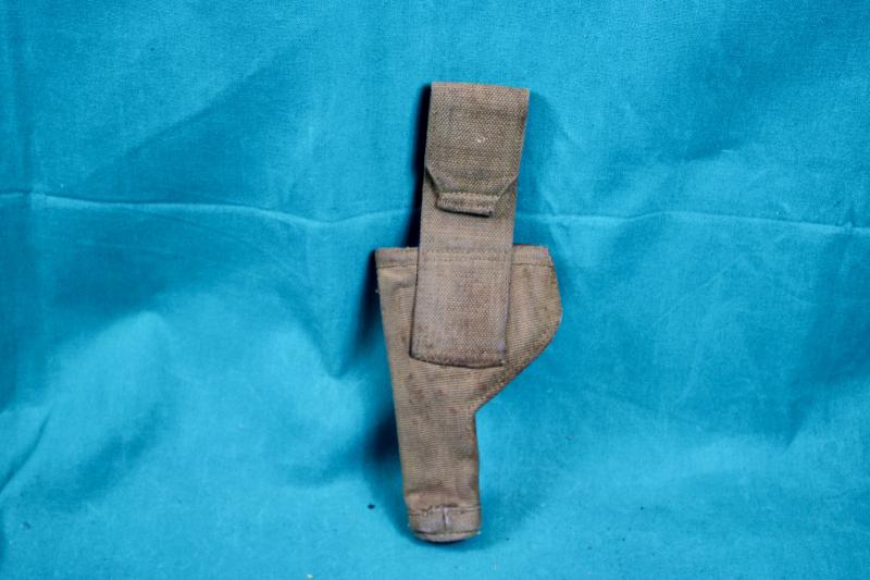 This is a blancoed webbing holster more commonly known as the tankers holster as it was only issued to armoured crews. This example is not dated or marker marked.