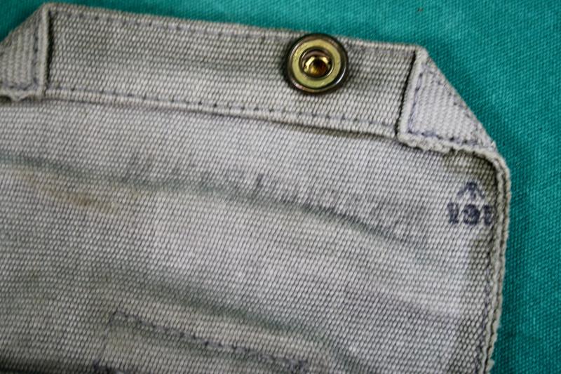 RAF issue 37 pattern holster with ammunition pouch. The holster is maker marked M.W.&S.LTD ( Martin Wright & Sons ), dated 1943. The ammunition pouch is maker marked MECo ( Mills Equipment Company ) and dated 1942. The RAF blanco has faded to a very light blue.