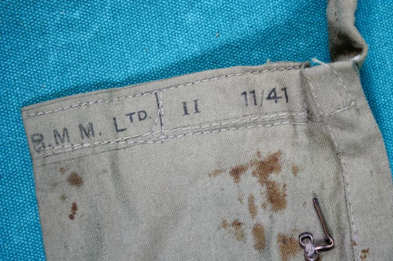 A November 1941 dated rifle bandolier which would have carried ten, five round clips of the 303 rifle ammunition. This example is maker marked B.M.M.LTD.