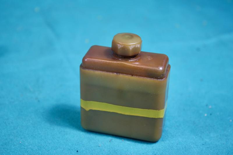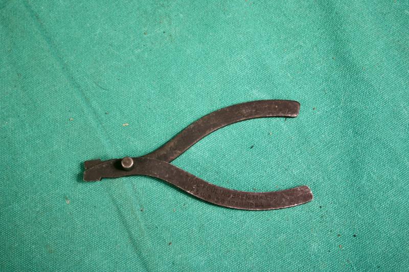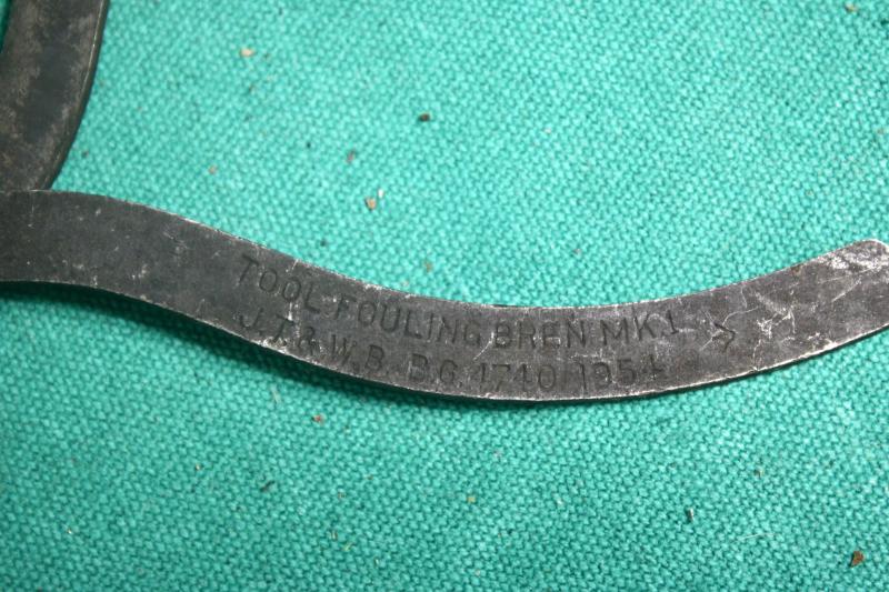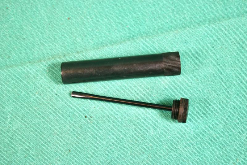 This is a 1945 dated spare barrel pouch with contents. The pouch is maker marked M.W&S.LTD ( Martin Wright & Sons ). The contents includes a deactivated MK1 barrel, spare magazine, cleaning rod with two brushes, one metal and plastic oiler, one bakelite oil bottle and a MK1 defouling tool. U.K. Sales Only.