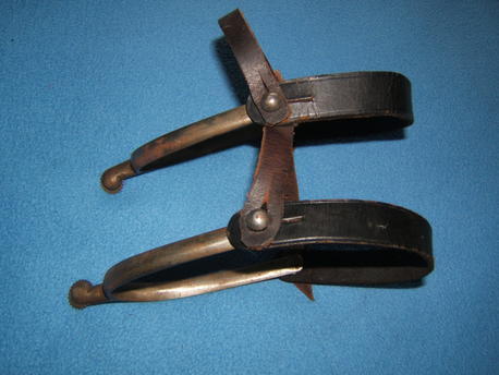 Wehrmacht issue Cavalry spurs. The leather has been expertly replaced. There are no markings or waffenampts.