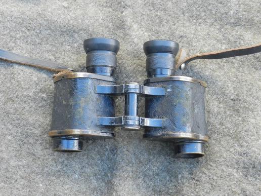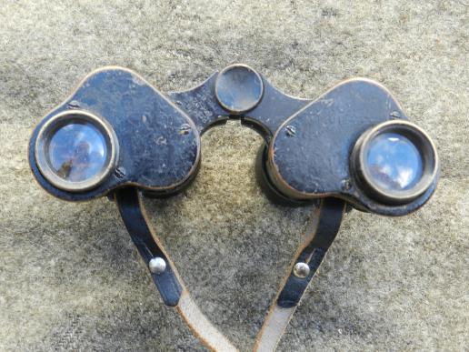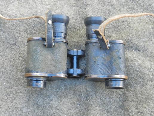 A good set of WW1 British 6x30 binoculars manufactured by "W.Watson & Son, London, Highgate". This example has good optics. The leather case is French made "AFSA, Paris", however it is stamped on the front with the British War Department arrow. It is missing it's carrying strap and lid fastener.