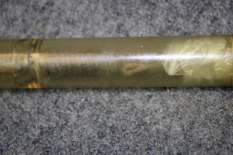This is a late-war multi-tool cleaning kit which consists of a brush and an oil bottle in a plastic tube. It was designed to fit in the butt stock of the M1 Garand rifle. The kit also includes a small. grease pot.