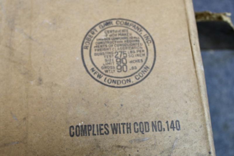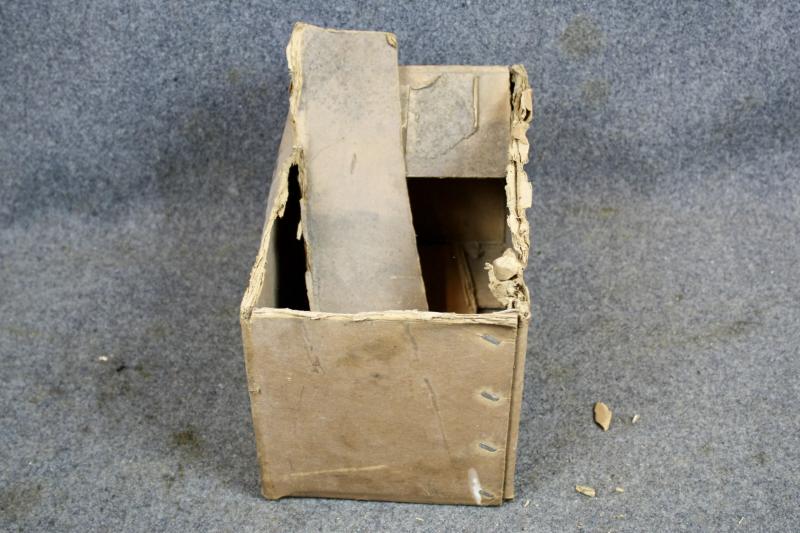 This is a cardboard ration box, which would have contained five packs of rations. This example is maker marked Robert Gair Company Inc.