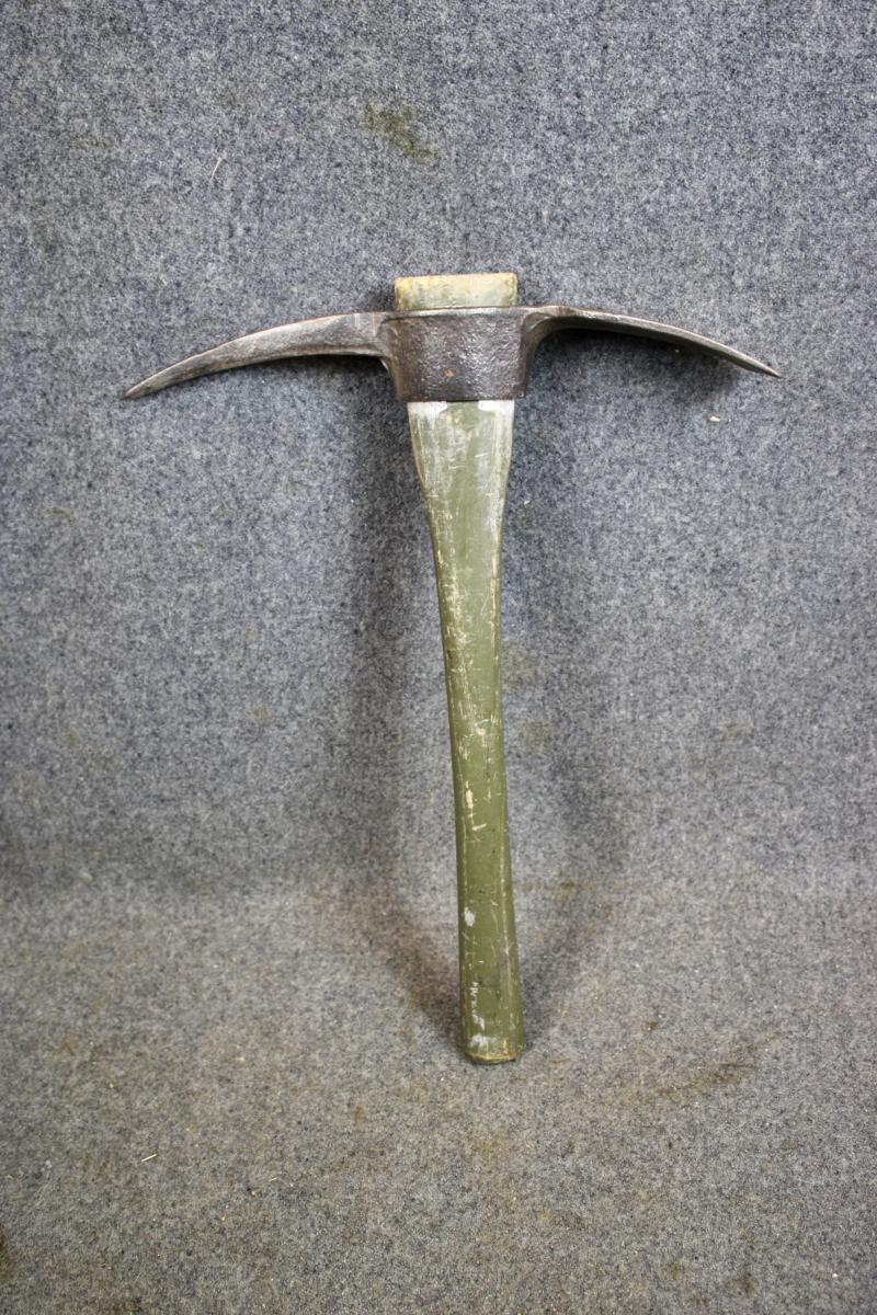This is a M1910 pick-mattlock entrenching tool and carrier. The pick is U.S, stamped however there are no visible dates or maker stamps.