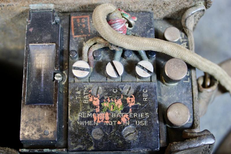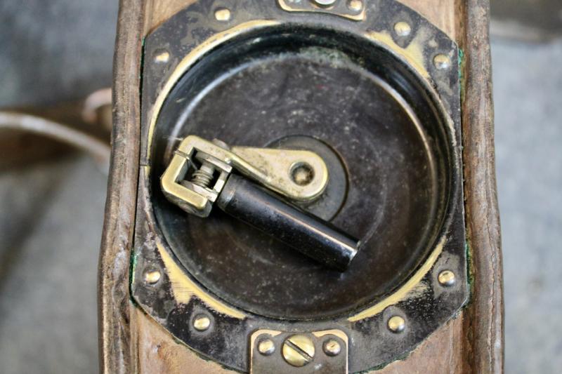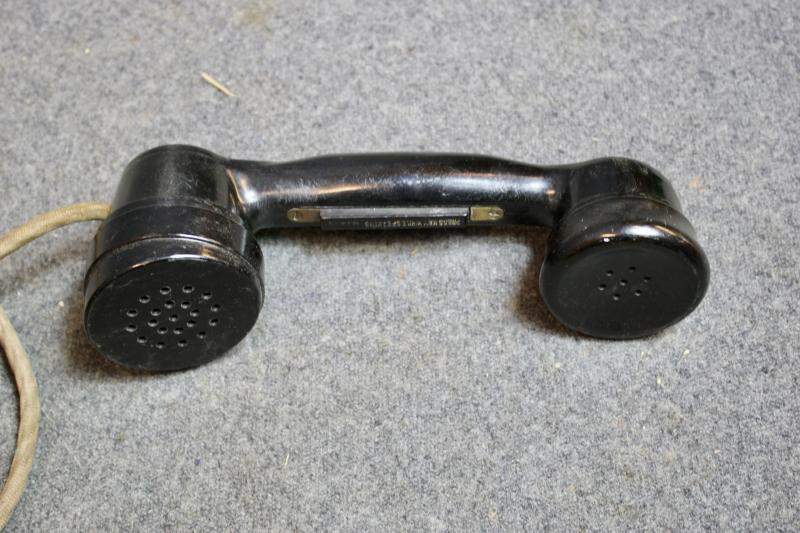 This is an EE-8-A field phone with a early TS-9 hand set. This example is in good condition however the fastener on the leather flap has gone.