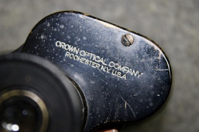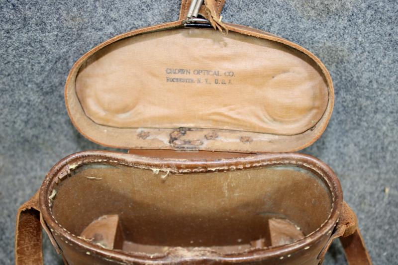 6x30 binoculars produced by the Crown Optical Company which has good optics. This example comes with its leather case, however the shoulder strap has split.