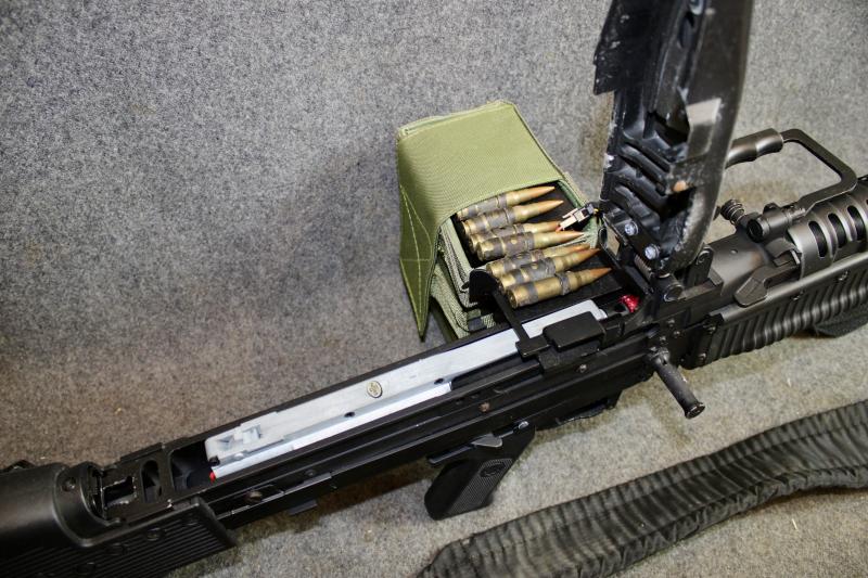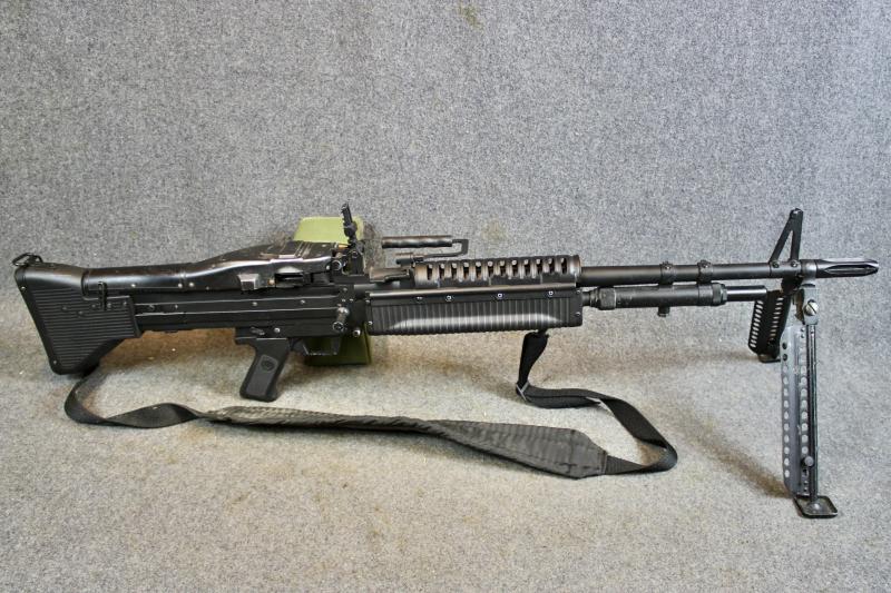 This is an all metal replica of the M60 machine gun which actually an airsoft example. However i can not confirm if it still actually works. It comes with a number of inert 7.62mm linked rounds and its battery/pellet box and a sling. The bi-pod has suffered with some minor damage to the leg locking lug. Still ideal as a display piece at the fraction of the cost for a real example. Sold subject the Violent Crimes Reduction Bill.