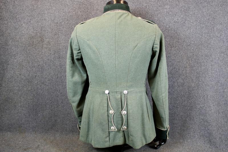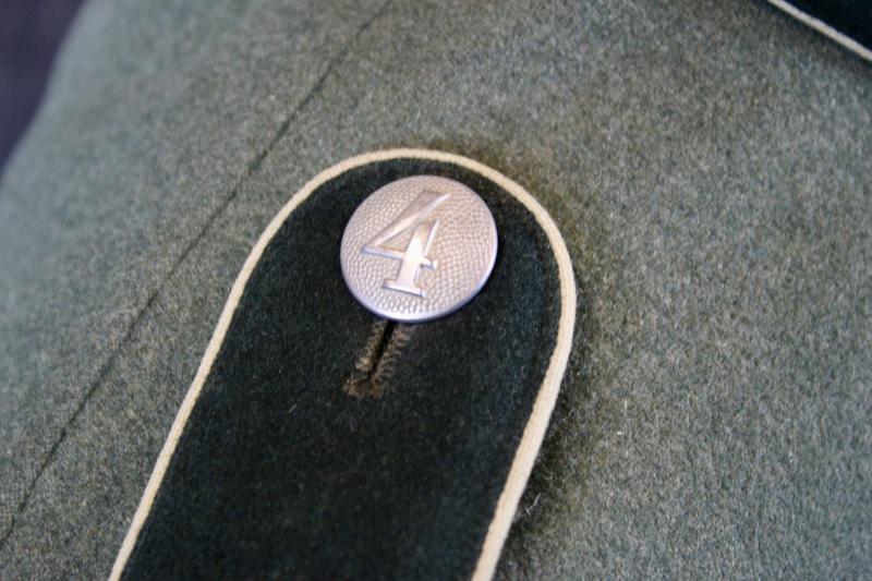 This is army parade tunic which has the branch of service piping white for Infantry, with 4th Company epaulette buttons. The tunic is in very good condition, with three sets of award loops. I would believe the awards would have been, 2nd Class Iron Cross ribbon bar, Infantry Assault and wound badges. The tunic is dated 1938. ( E38). The letter E is for Erfurt. The parade tunic ( Waffenrock ) was only in production from 1936 to 1940, when war demands too president the production of the parade tunic was stopped. However it was planned for the parade tunic to be re-introduced after the war.