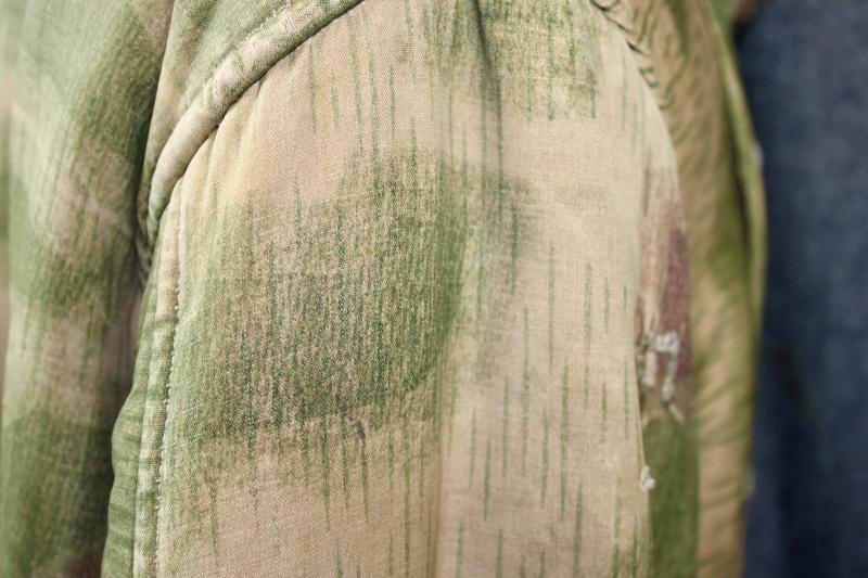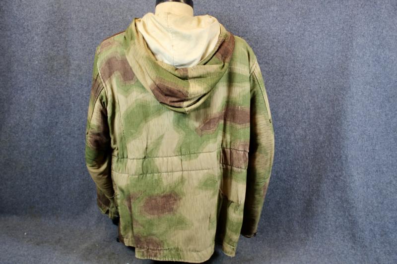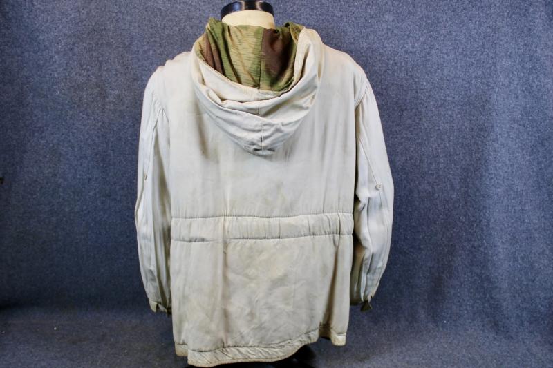 This is good example of a Tan & Water reversible winter parka. Note the tear drop camouflage pattern on the front of the parka is horizontal, where the arms and back are vertical, which makes this example a unique version of the Tan & Water camouflage pattern.