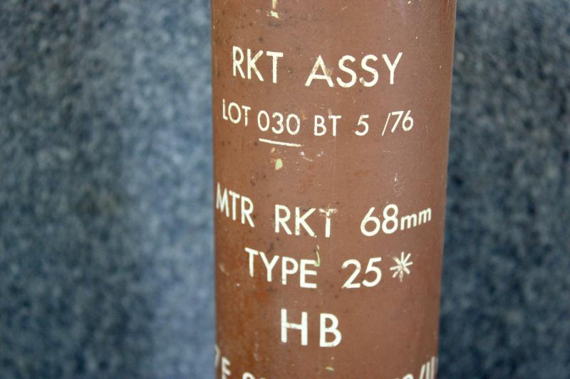 This is the main body of a inert Type 25, 68mm mortar rocket. This example is in excellent condition and is dated May 1976. U.K. Sales Only.